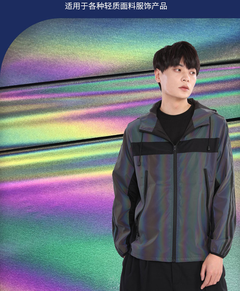 炫彩华体会平台-华体会(中国)布又称幻彩/七彩华体会平台-华体会(中国)布,在夜晚灯光照射下可呈现如彩虹般渐变色,其出色华体会平台-华体会(中国)性能的同时又兼顾色彩多样性, 可广泛应用于各类休闲服饰及户外用品等领域。